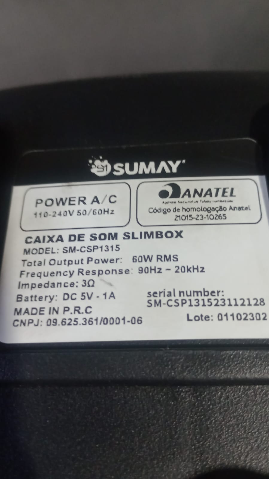 Caixa de som SLIMBOX mod SMCSR 1319. Aparelho não testado. Sem garantia. Vendido no estado que se encontra.