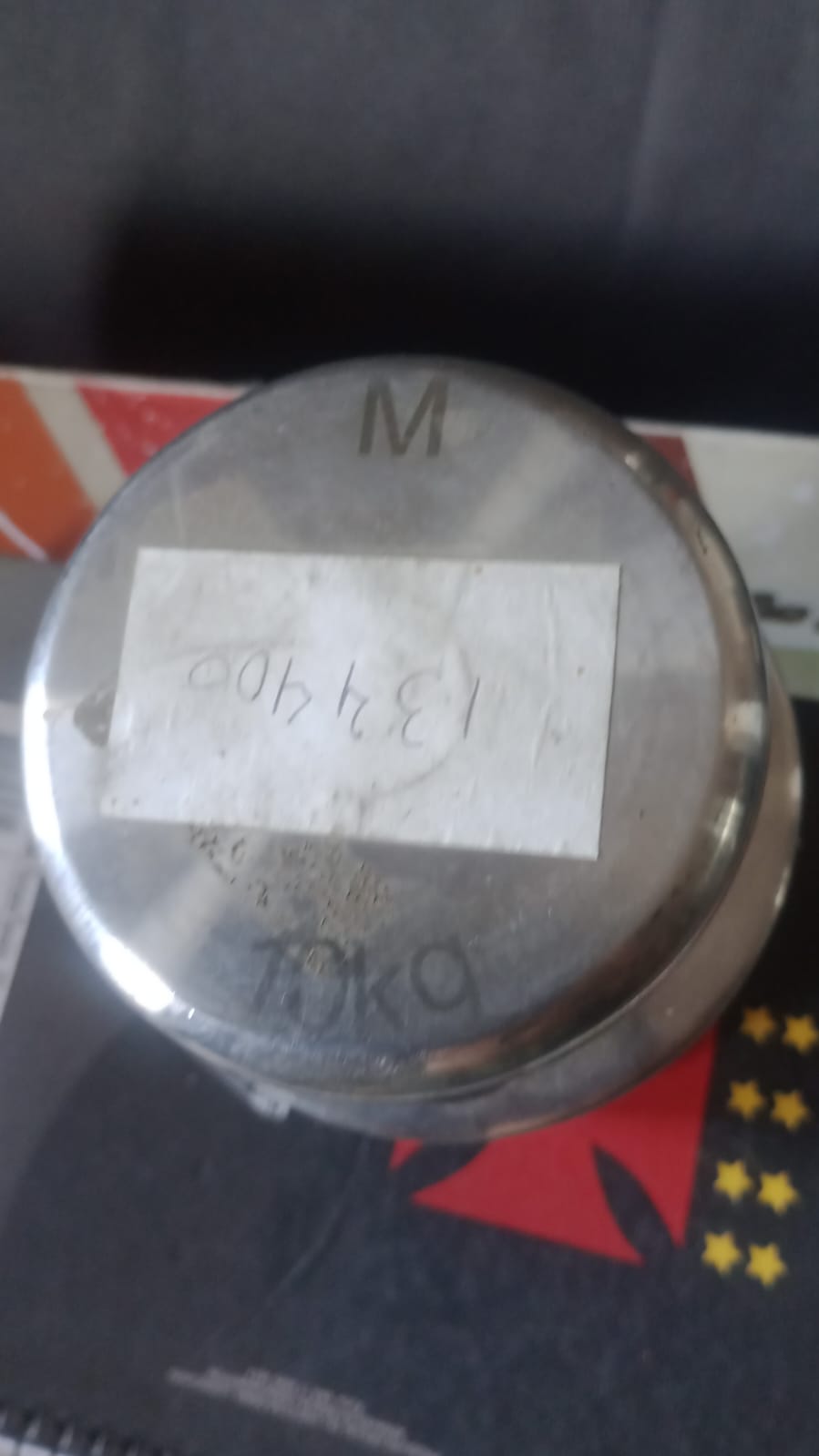 Peso em aço inox 10k. Aparelho não testado. Sem garantia. Vendido no estado que se encontra.